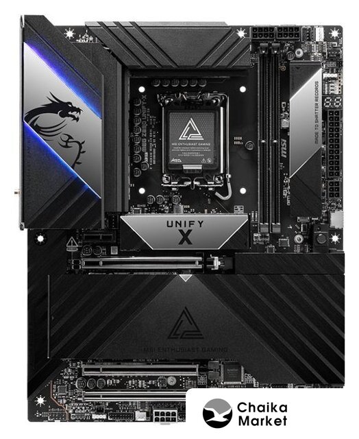 ATX, сокет Intel LGA1851, чипсет Intel Z890, память 2xDDR5/DDR5 CUDIMM до 12527 МГц, слоты: 2xPCIe x16 5.0, 1xPCIe x4, 6xM.2, 802.11be (Wi-Fi 7)+Bluetooth 5.4, 22+1+2+1+1 фаз питания