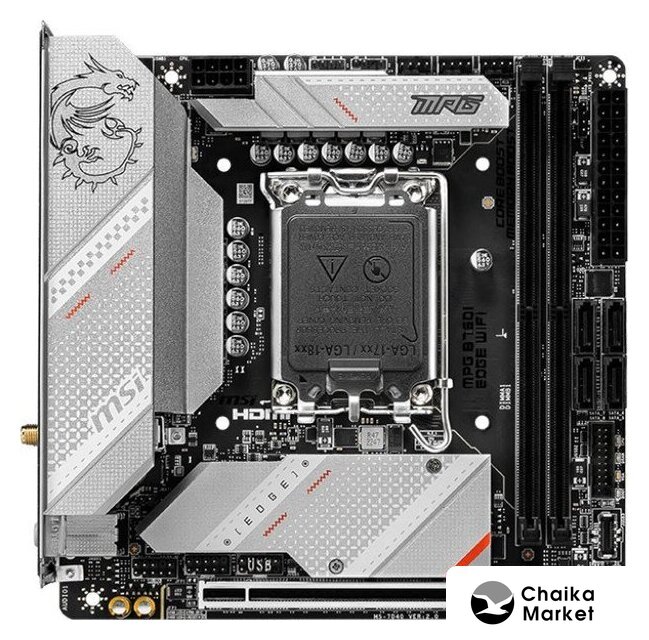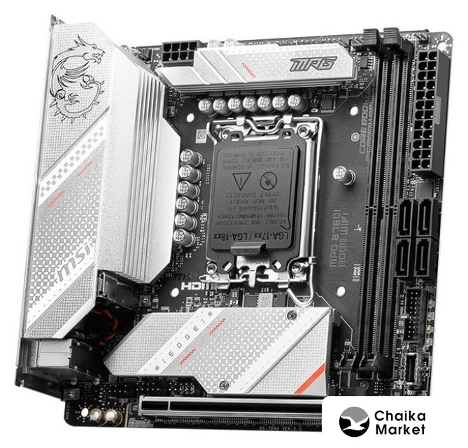Mini-ITX, сокет Intel LGA1700, чипсет Intel B760, память 2xDDR5 до 8000 МГц, слоты: 1xPCIe x16 4.0, 2xM.2, 802.11ax (Wi-Fi 6E)+Bluetooth 5.3, 8+1+1 фаз питания