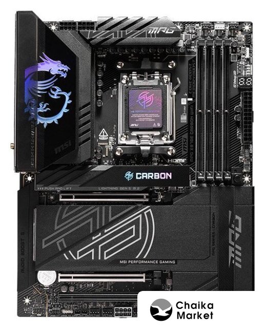 ATX, сокет AMD AM5, чипсет AMD X870E, память 4xDDR5 до 8000 МГц, слоты: 3xPCIe x16 5.0, 4xM.2, 802.11be (Wi-Fi 7)+Bluetooth 5.4, 16+2+2 фаз питания