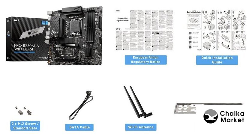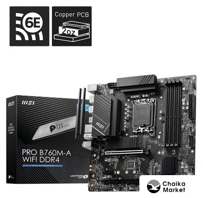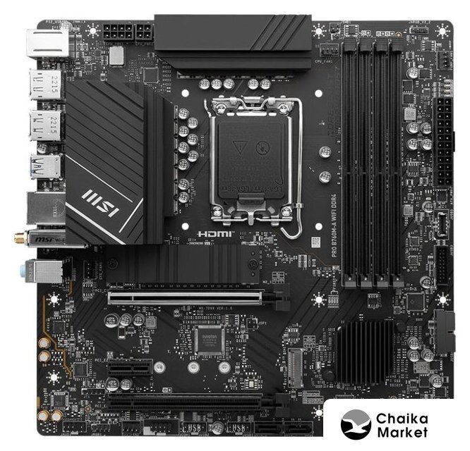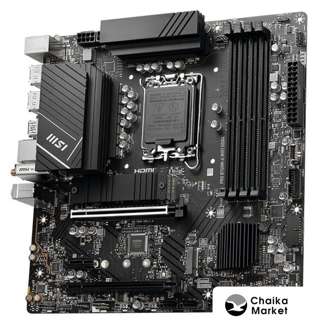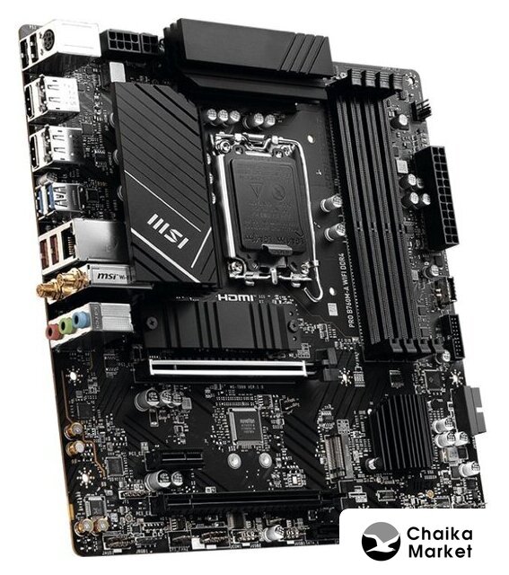 mATX, сокет Intel LGA1700, чипсет Intel B760, память 4xDDR4 до 5333 МГц, слоты: 3xPCIe x16 4.0, 2xM.2, 802.11ax (Wi-Fi 6)+Bluetooth 5.2