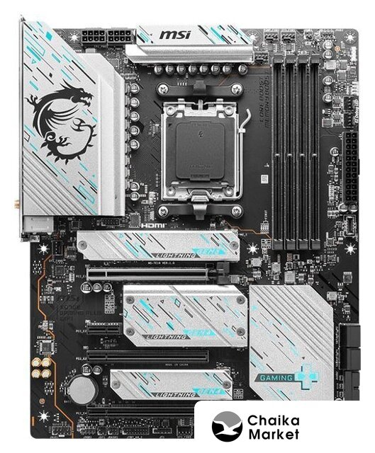 ATX, сокет AMD AM5, чипсет AMD X870, память 4xDDR5 до 8200 МГц, слоты: 4xPCIe x16 5.0, 3xM.2, 802.11be (Wi-Fi 7)+Bluetooth 5.4, 14+2+1 фаз питания