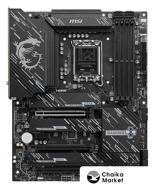 ATX, сокет Intel LGA1851, чипсет Intel Z890, память 4xDDR5 до 9466 МГц, слоты: 2xPCIe x16 5.0, 1xPCIe x4, 4xM.2, 802.11be (Wi-Fi 7)+Bluetooth 5.4, 18+1+1+1+1 фаз питания