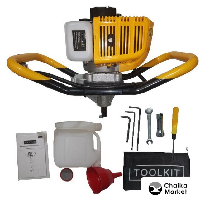 Полная комплектация | - Бензобур - 1 шт.- Канистра для приготовления топливной смеси - 1 шт.- Воронка для топлива - 1 шт.- Фильтр - 1 шт.- Пенал тряпичный для инструмента - 1 шт.- Шестигранные ключи - 3 шт- Ключ свечной - 1 шт- Отвертка - 1 шт- Ключ гаечный 8/10 - 1 шт- Инструкция- Коробка |