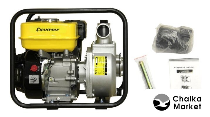для чистой воды, бензиновый двигатель, мощность 4.7 кВт, производительность 1000 л/ч, высота подъема 28 м, бак 3.6 л, патрубки 80/80 мм