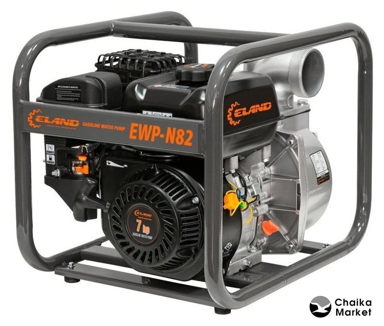 для слабозагрязненной воды, бензиновый двигатель, мощность 5.2 кВт, производительность 750 л/мин, высота подъема 28 м, бак 3.6 л, патрубки 80/80 мм