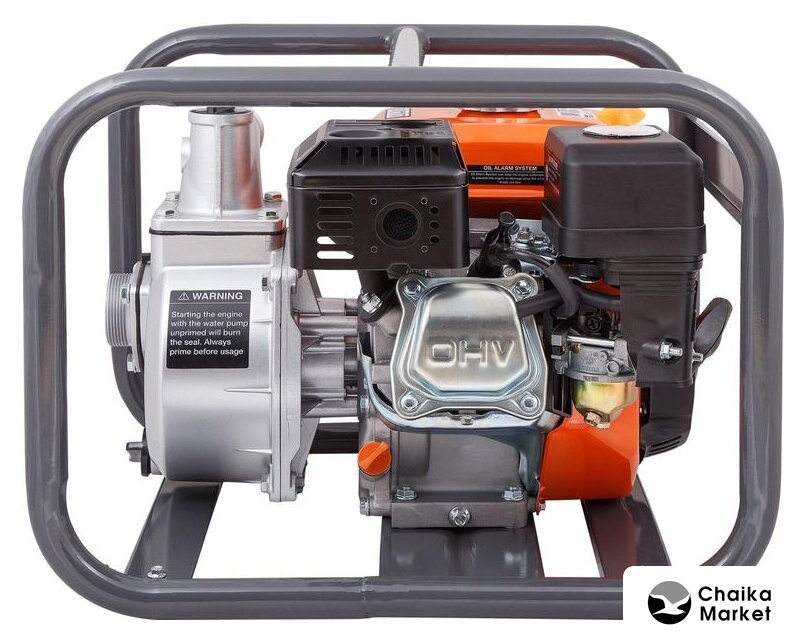 для слабозагрязненной воды, бензиновый двигатель, мощность 4.78 кВт, производительность 1000 л/ч, высота подъема 30 м, бак 3.5 л, патрубки 76/76 мм