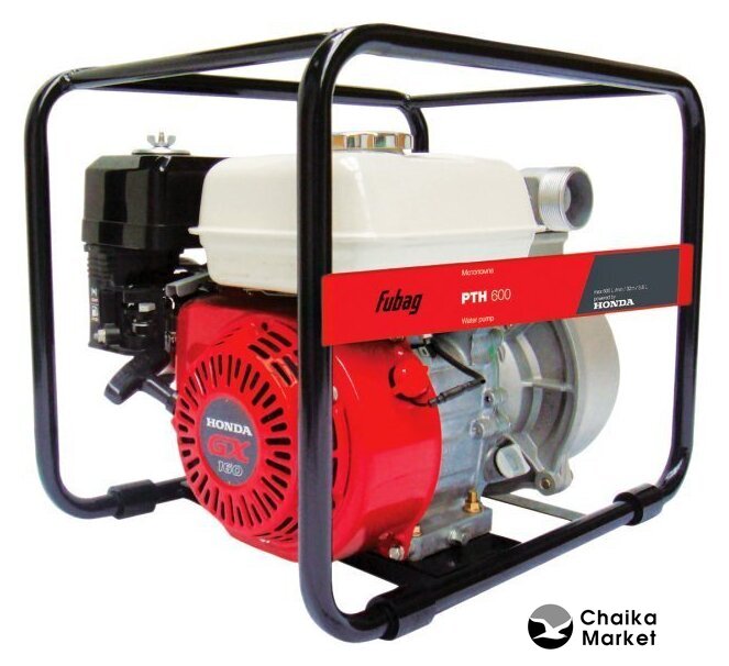 для чистой воды, бензиновый двигатель, мощность 6.3 кВт, производительность 1600 л/мин, высота подъема 30 м, бак 6.5 л, патрубки 100/100 мм