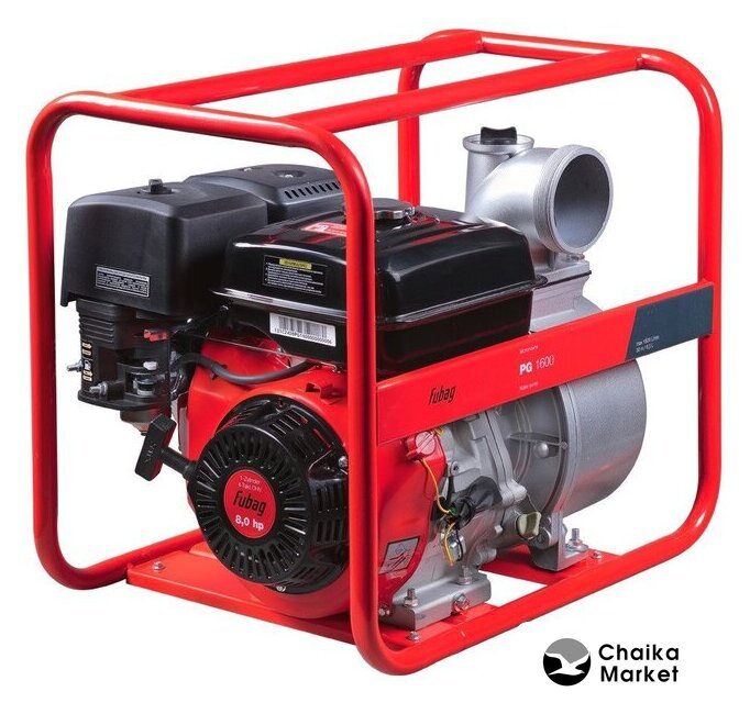 для чистой воды, бензиновый двигатель, мощность 5.8 кВт, производительность 1600 л/ч, высота подъема 28 м, бак 6.7 л, патрубки 100/100 мм
