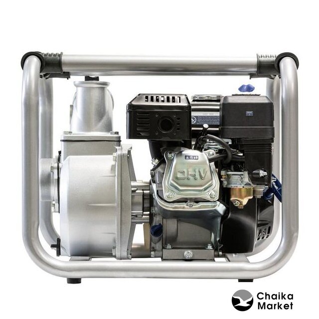 для слабозагрязненной воды, бензиновый двигатель, мощность 5.2 кВт, производительность 1000 л/мин, высота подъема 28 м, бак 3.6 л, патрубки 80/80 мм