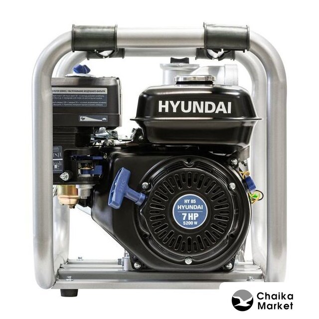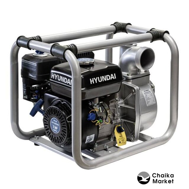 для слабозагрязненной воды, бензиновый двигатель Hyundai IC210, мощность 5.2 кВт, производительность 600 л/мин, высота подъема 30 м, бак 3.6 л, патрубки 50/50 мм