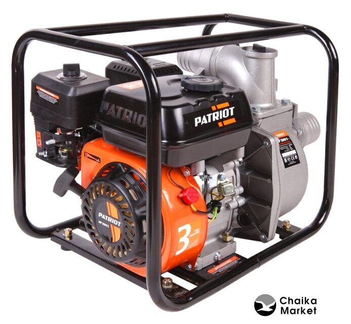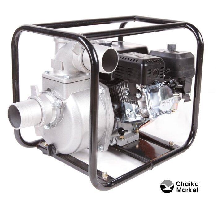 для слабозагрязненной воды, бензиновый двигатель, мощность 5.15 кВт, производительность 1000 л/мин, высота подъема 26 м, бак 3.6 л, патрубки 80/80 мм