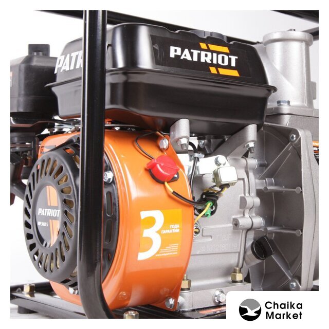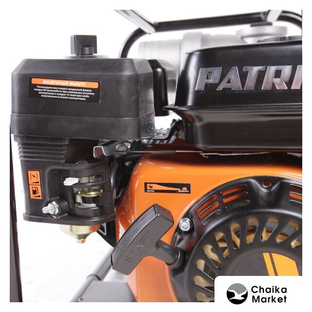 для слабозагрязненной воды, бензиновый двигатель, мощность 5.2 кВт, производительность 500 л/мин, высота подъема 30 м, бак 3.6 л, патрубки 50/50 мм