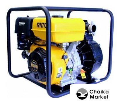 для слабозагрязненной воды, бензиновый двигатель, мощность 6.6 кВт, производительность 1800 л/мин, высота подъема 28 м, бак 6 л, патрубки 100/100 мм