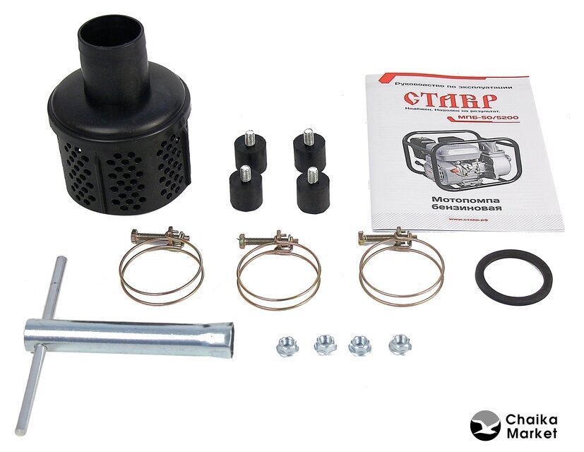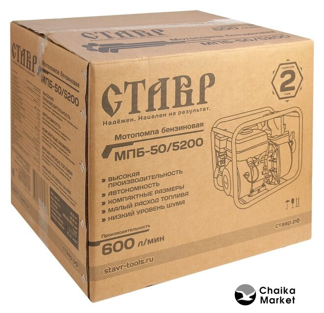для слабозагрязненной воды, бензиновый двигатель Lifan LF168F, мощность 4.9 кВт, производительность 700 л/мин, бак 3.6 л, патрубки 50/50 мм