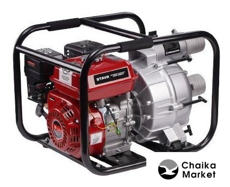 для грязной воды, бензиновый двигатель, мощность 5.1 кВт, производительность 1300 л/мин, высота подъема 26 м, бак 3.6 л, патрубки 80/80 мм