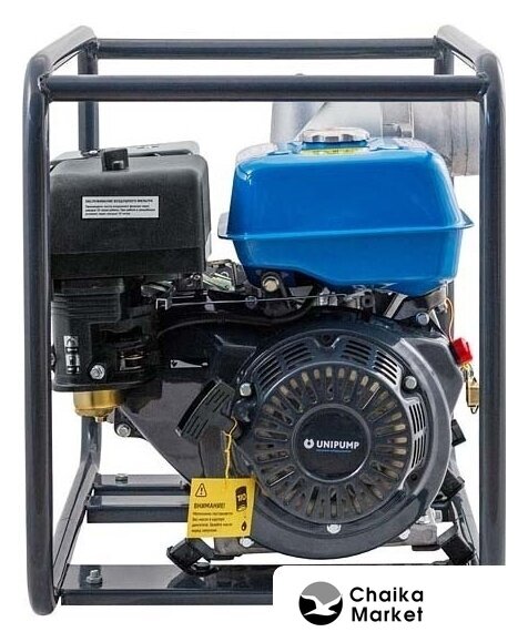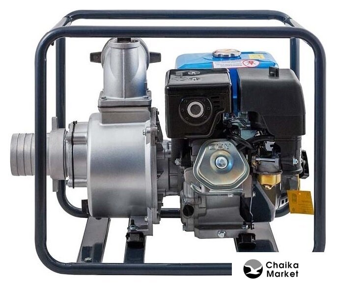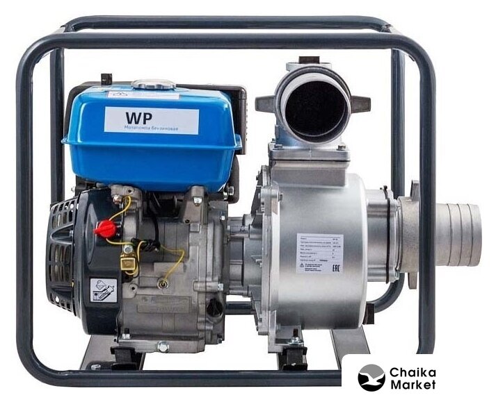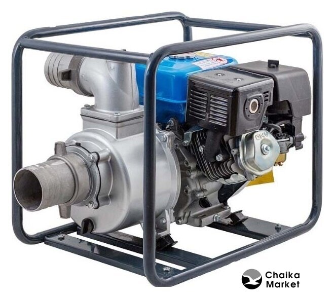 для слабозагрязненной воды, бензиновый двигатель, мощность 6.62 кВт, производительность 1600 л/мин, высота подъема 30 м, бак 6.5 л, патрубки 100/100 мм