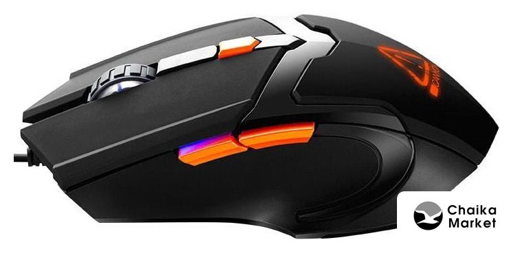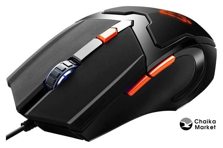 полноразмерная мышь для ПК, проводная USB, сенсор оптический 4000 dpi, 7 кнопок, колесо с нажатием и отклонением, цвет черный
