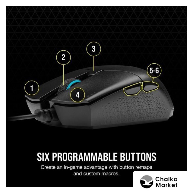 полноразмерная игровая мышь для ПК, проводная USB, сенсор оптический 6200 dpi, 7 кнопок, колесо с нажатием, цвет черный