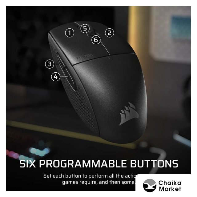полноразмерная игровая мышь для ПК/для Sony PlayStation/для Microsoft Xbox, проводная USB/проводная USB Type-C/беспроводная радио, сенсор оптический 25600 dpi, 6 кнопок, колесо с нажатием, цвет черный