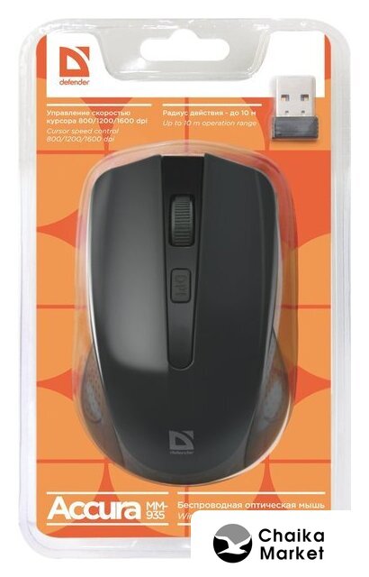 полноразмерная мышь для ПК, беспроводная радио, сенсор оптический 1600 dpi, 4 кнопки, колесо с нажатием, цвет черный