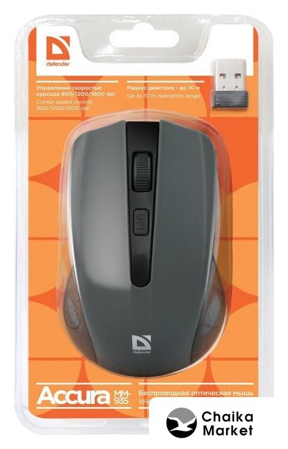 полноразмерная мышь для ПК, беспроводная радио, сенсор оптический 1600 dpi, 6 кнопок, колесо с нажатием, цвет черный/серый