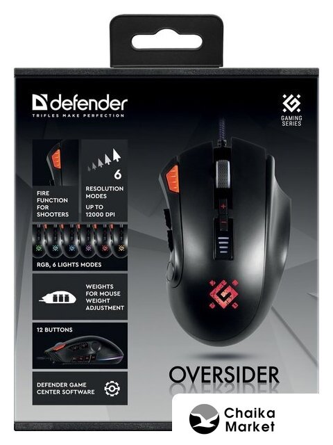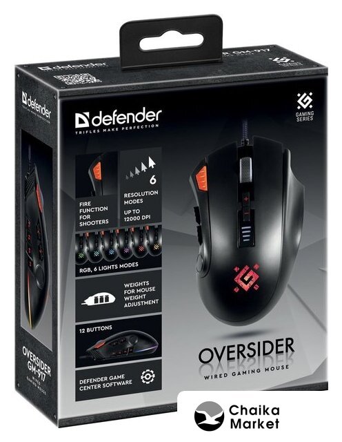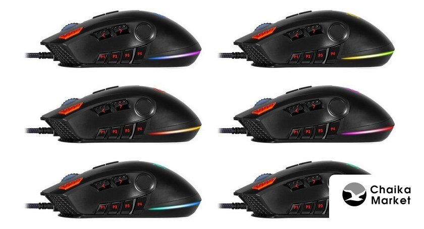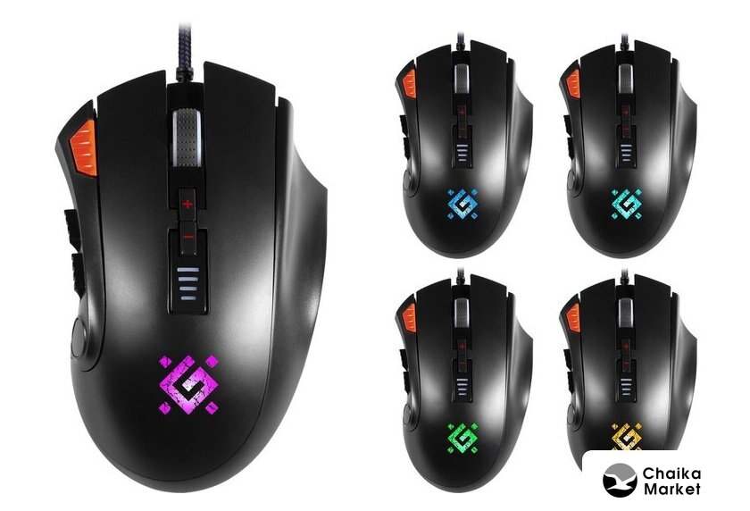 полноразмерная игровая мышь для ПК, проводная USB, сенсор оптический 6200 dpi, 7 кнопок, колесо с нажатием, цвет черный