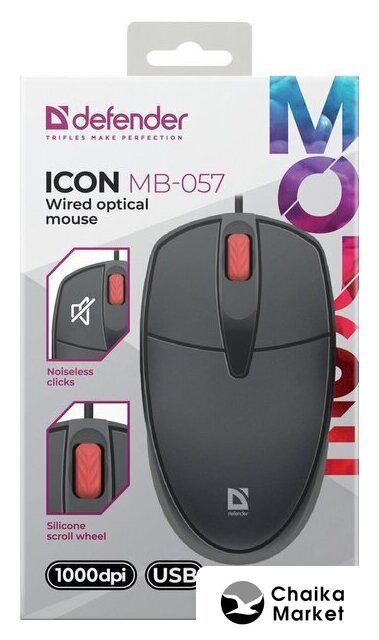 полноразмерная мышь для ПК, проводная USB, сенсор оптический 1000 dpi, 3 кнопки, колесо с нажатием, цвет черный