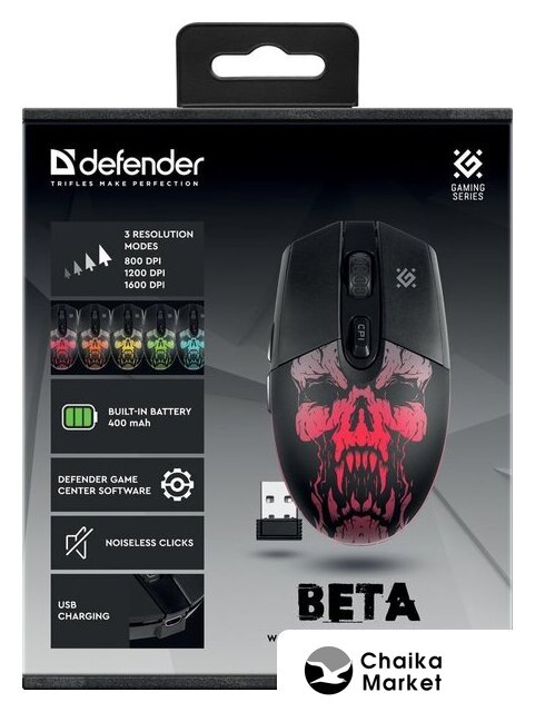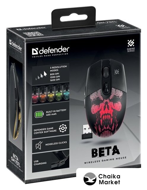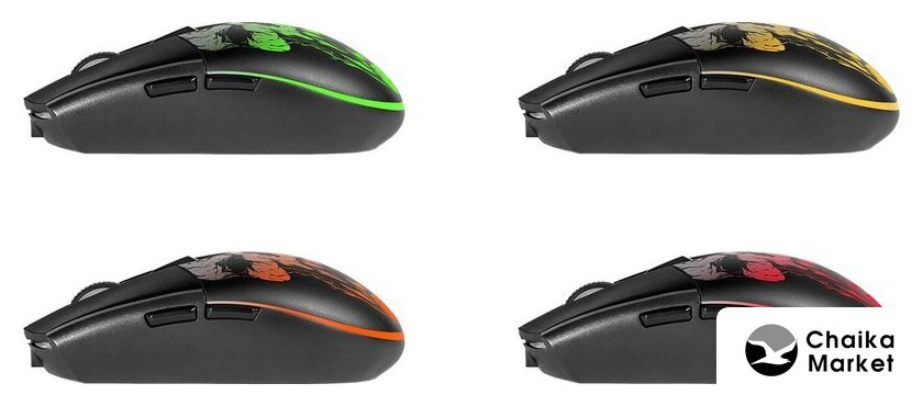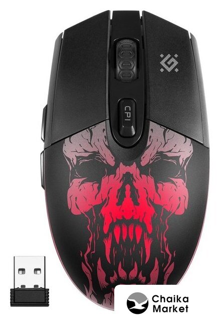 полноразмерная игровая мышь для ПК, беспроводная радио, сенсор оптический 3200 dpi, 6 кнопок, колесо с нажатием, цвет черный/цветной принт