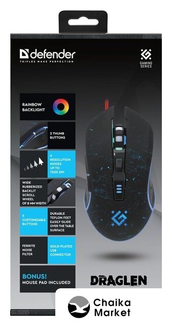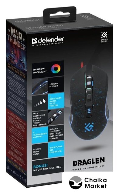 полноразмерная игровая мышь для ПК, проводная USB, сенсор оптический 12800 dpi, 6 кнопок, колесо с нажатием, цвет черный/цветной принт
