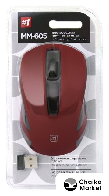 полноразмерная мышь для ПК, беспроводная радио, сенсор оптический 1600 dpi, 6 кнопок, колесо с нажатием, цвет красный