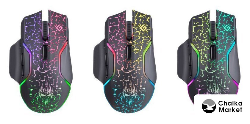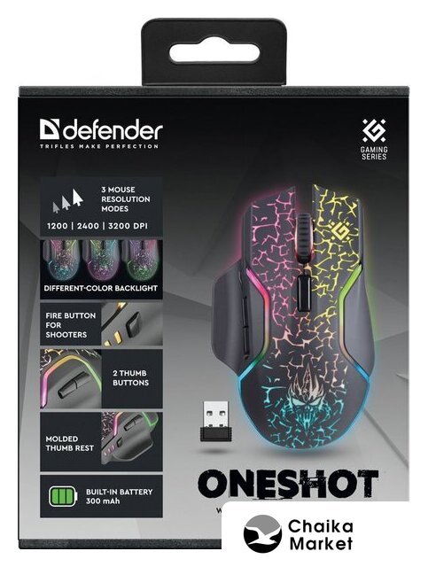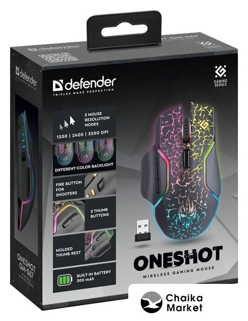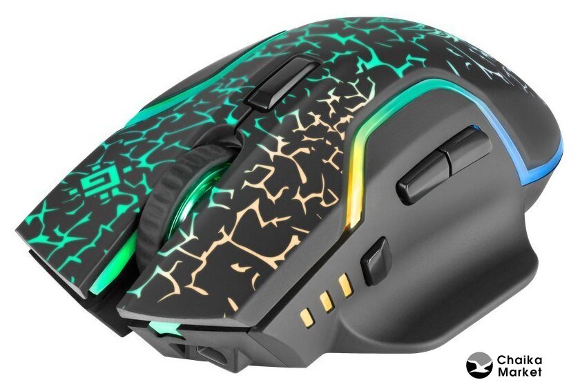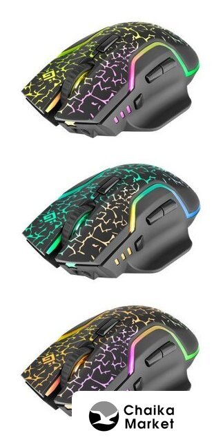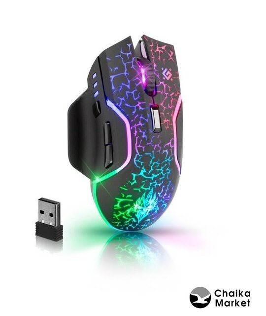полноразмерная игровая мышь для ПК, беспроводная радио, сенсор оптический 3200 dpi, 6 кнопок, колесо с нажатием, цвет черный/цветной принт