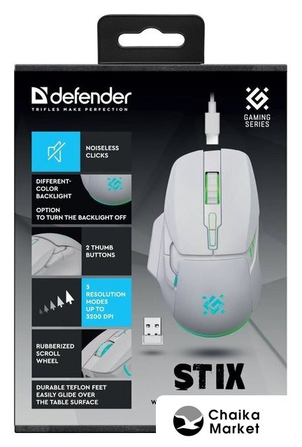 полноразмерная игровая мышь для ПК, беспроводная радио, сенсор оптический 3200 dpi, 6 кнопок, колесо с нажатием, цвет черный