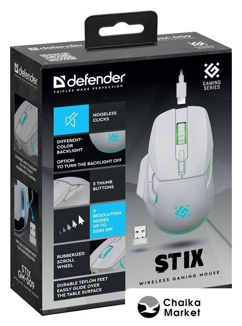 полноразмерная игровая мышь для ПК, беспроводная радио/Bluetooth, сенсор оптический 1600 dpi, 6 кнопок, колесо с нажатием, цвет белый/темно-синий