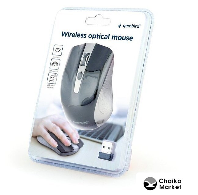 ноутбучная мышь для ПК, беспроводная радио, сенсор оптический 1600 dpi, 3 кнопки, колесо с нажатием, цвет серый/черный