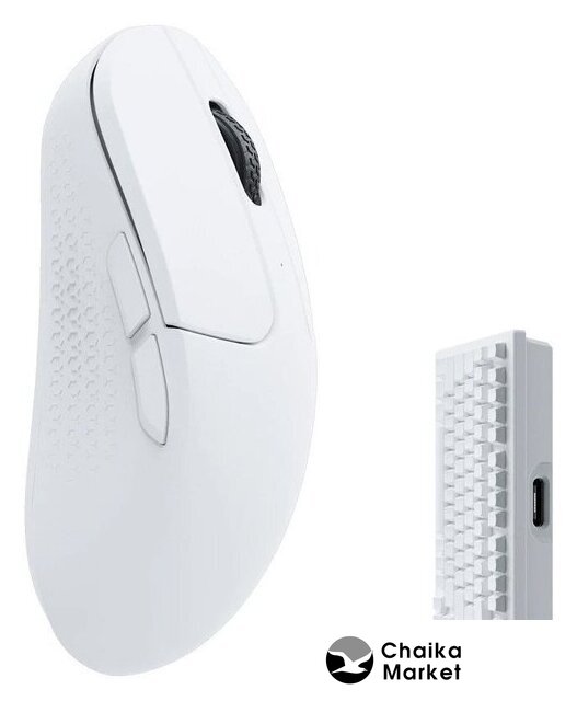 полноразмерная игровая мышь, проводная USB Type-A/проводная USB Type-C/беспроводная Bluetooth/беспроводная радио, сенсор оптический 30000 dpi, 9 кнопок, колесо с нажатием, цвет белый