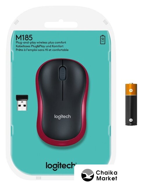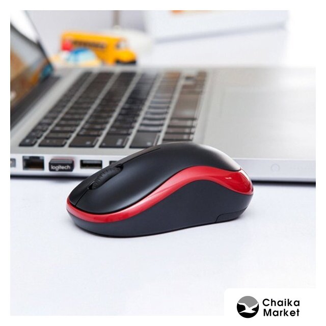 полноразмерная мышь для ПК, беспроводная радио, сенсор оптический 1000 dpi, 3 кнопки, колесо с нажатием, цвет красный/черный