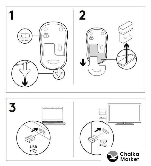 полноразмерная мышь для ПК, беспроводная радио, сенсор оптический 1000 dpi, 3 кнопки, колесо с нажатием, цвет серый/черный