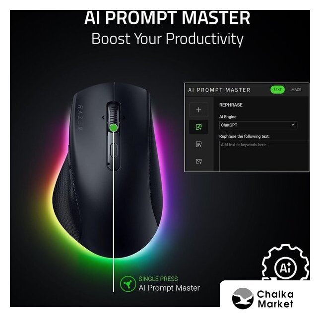 полноразмерная игровая мышь, проводная USB Type-A/проводная USB Type-C/беспроводная Bluetooth/беспроводная радио, сенсор оптический 30000 dpi, 9 кнопок, колесо с нажатием, цвет черный