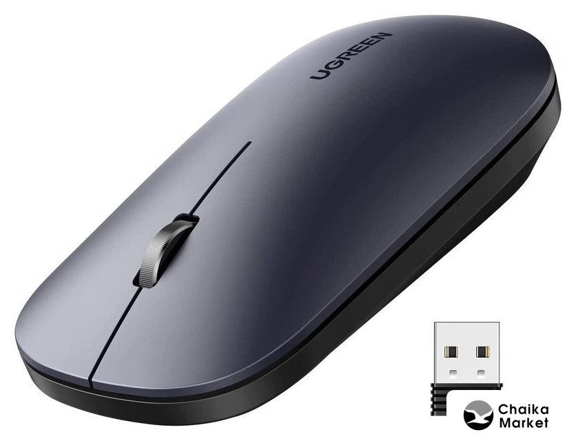 ноутбучная мышь для ПК, беспроводная радио, сенсор оптический 1000 dpi, 3 кнопки, колесо с нажатием, цвет серый/черный