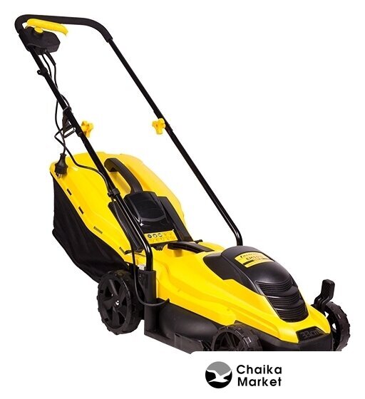 колёсная газонокосилка, электрический двигатель 1800 Вт (2.44 л.с.), ширина скашивания: 38 см, жесткий травосборник 35 л
