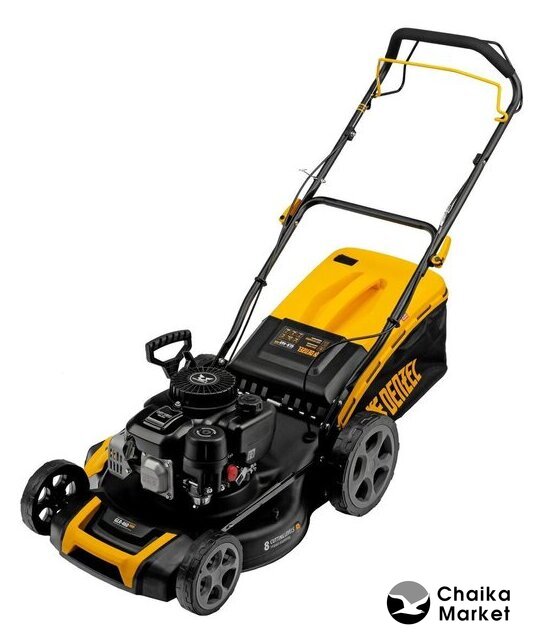 Комплектация | - Газонокосилка в сборе с ножом и колесами- Травосборник- Дефлектор бокового выброса- Нижняя часть рукоятки- Верхняя часть рукоятки- Комплект крепежа- Ключ свечной- Фиксатор троса- Заглушка для мульчирования- Руководство по эксплуатации с гарантийным талоном |