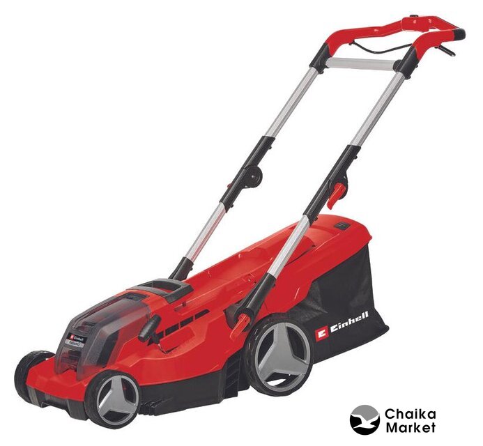 роторная газонокосилка, аккумуляторный двигатель, работа от аккумулятора, ширина скашивания: 43 см, жесткий травосборник 63 л