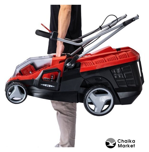 роторная газонокосилка, аккумуляторный двигатель, 20 В, аккумулятор в комплекте, ширина скашивания: 40 см, мягкий травосборник 40 л
