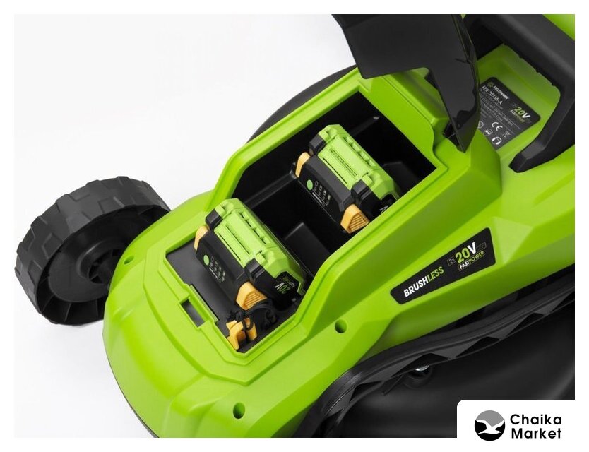 роторная газонокосилка, аккумуляторный двигатель, 40 В, аккумулятор в комплекте, ширина скашивания: 32 см, жесткий травосборник 30 л