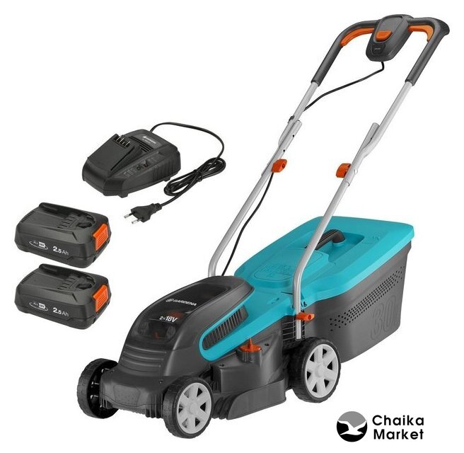 | Комплектация | - Газонокосилка- Аккумулятор (2.5 А*ч) - 2 шт.- Зарядное устройство - 1 шт.- Травосборник (30 л) - 1 шт.- Инструкция- Упаковка |
