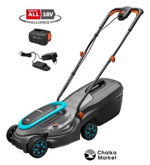 роторная газонокосилка, аккумуляторный двигатель, 36 В, без аккумулятора в комплекте, ширина скашивания: 37 см, мягкий травосборник 45 л