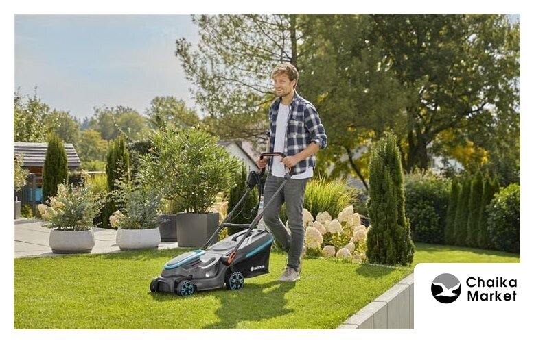 роторная газонокосилка, аккумуляторный двигатель, 18 В, аккумулятор в комплекте, ширина скашивания: 32 см, жесткий травосборник 30 л