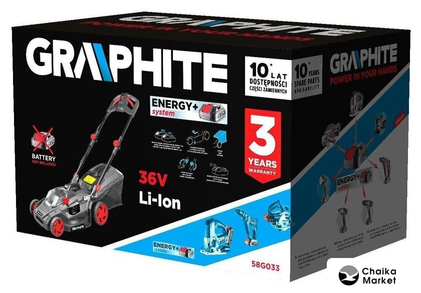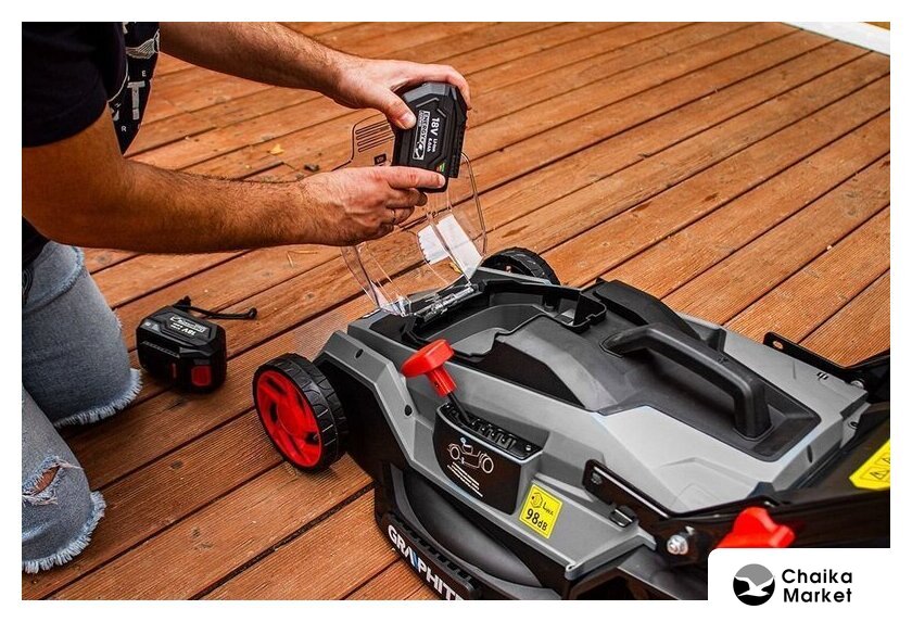 роторная газонокосилка, аккумуляторный двигатель, 36 В, без аккумулятора в комплекте, ширина скашивания: 44 см 50 л
