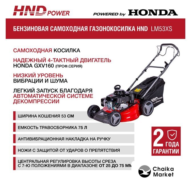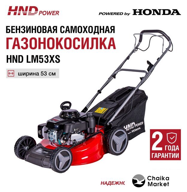 роторная газонокосилка, самоходная, бензиновый двигатель, 5500 Вт, 7.5 л.с., четырехтактный, ширина скашивания: 53 см 75 л