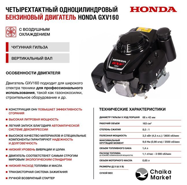 | Модель двигателя | Honda GXV160 |